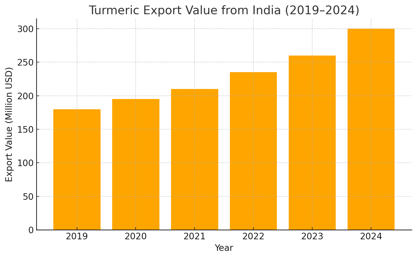 In 2024, India exported turmeric worth approximately $300 million, with the U.S. and Germany among the top destinations.